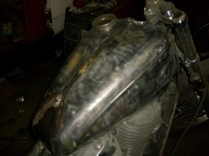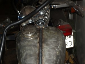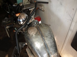 Rama pospawana,  zbiornik i siodło na swoim miejscu,  kierownica dogięta.